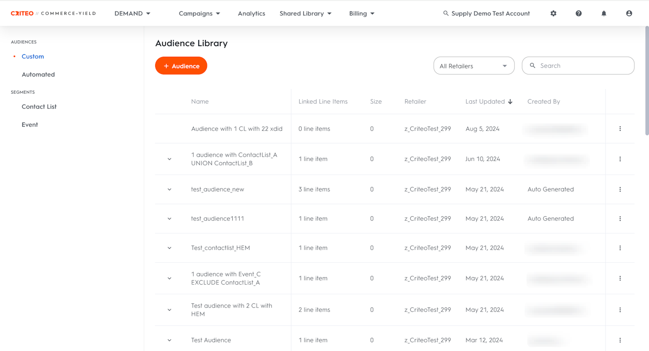 Created By: The user responsible for the creation of the audience.