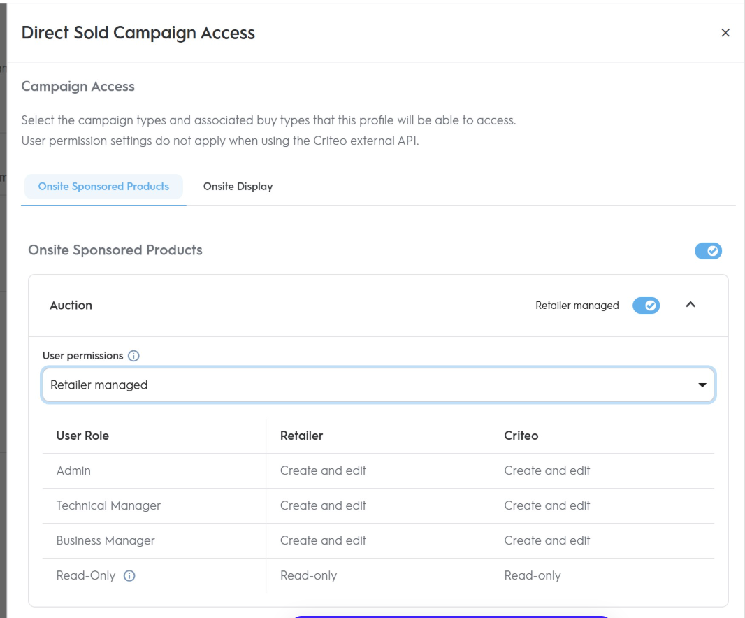 Restrict your inventory access to specific campaign types (Onsite Display or Onsite Sponsored Products).