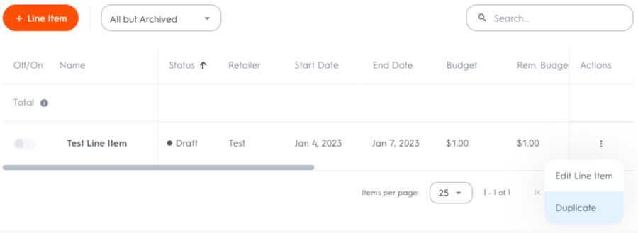Once you've created your line item, you can duplicate it, creating a new line item with almost identical settings to the original. You can then resubmit the duplicated line item to the retailer for review.