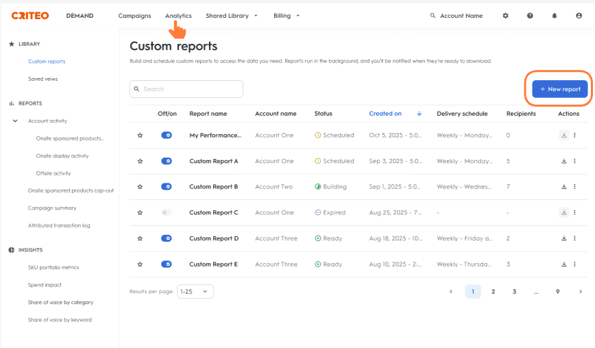 Navigate to the Analytics tab under the Demand side of your dashboard and click on Custom Reports.