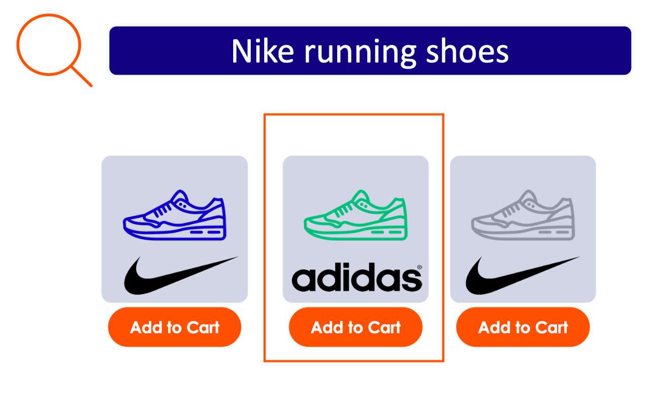 The integrity of the search (e.g., “Nike running shoes”) is maintained - only brands with similar offerings are surfaced.