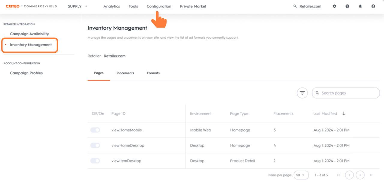 While Criteo handles the technical setup and ongoing updates, this dashboard provides you with full visibility into your onsite inventory in real-time. It’s designed to keep you informed - showing exactly where your placements appear, which formats are in use, and how everything is configured across your digital properties.