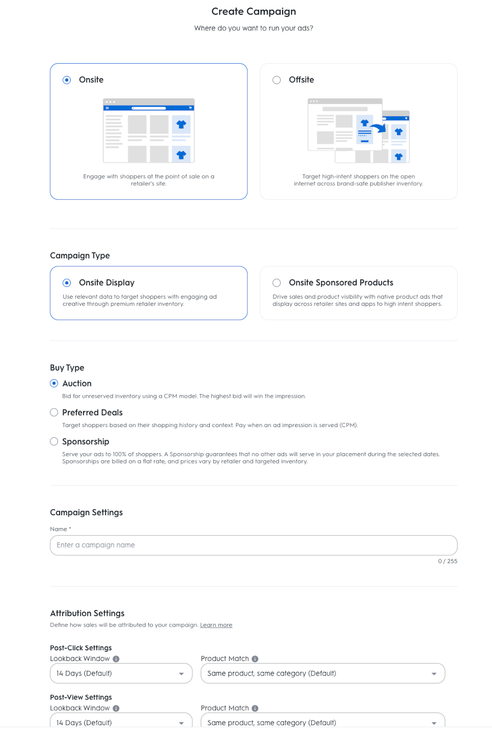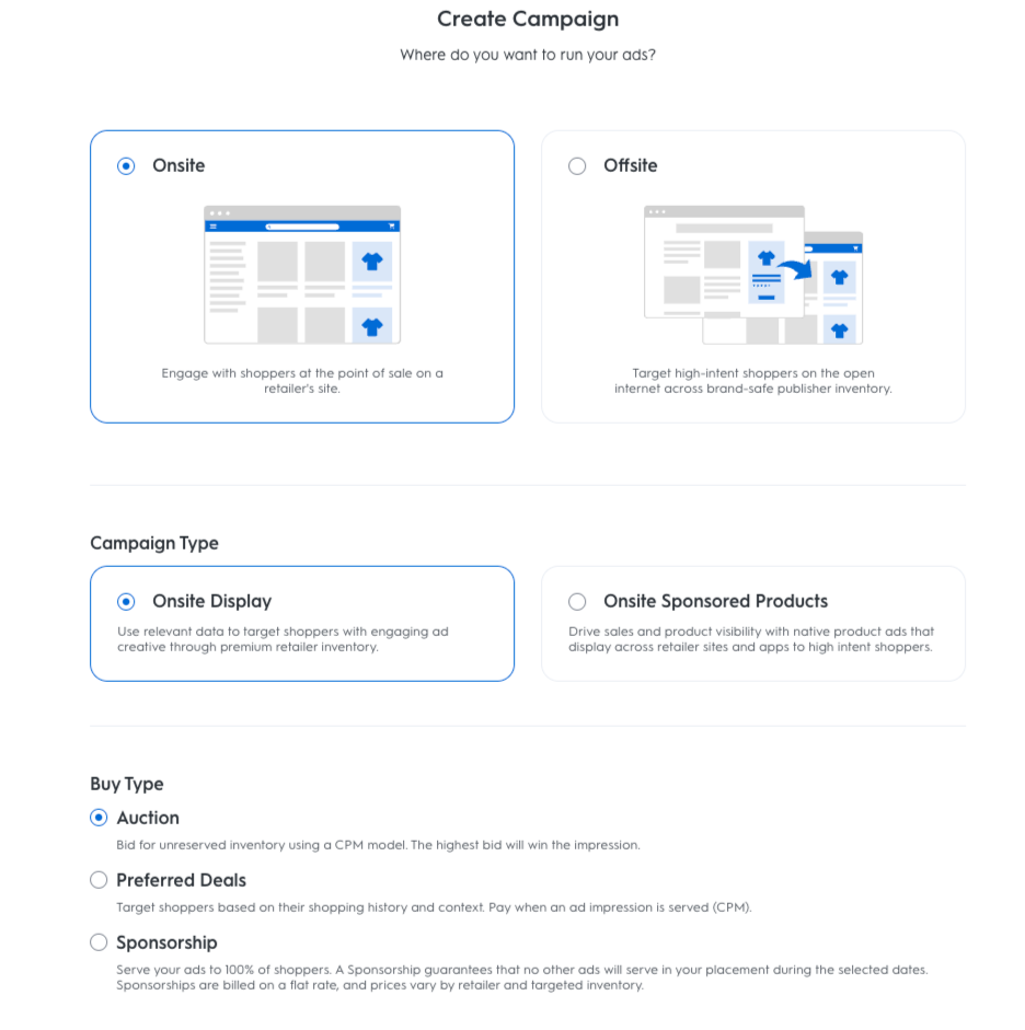 Choose your preferred Buy Type, and the campaign creation form should automatically appear.