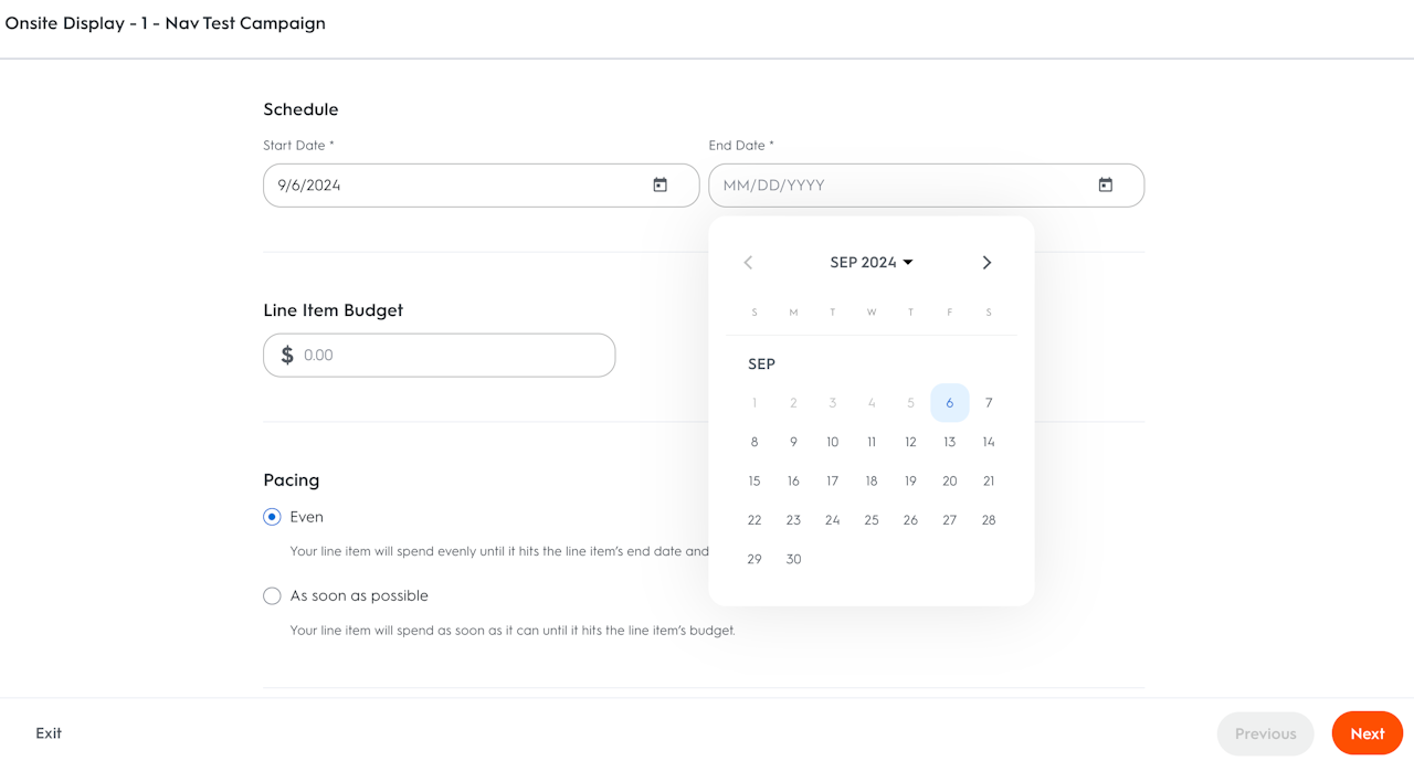 After naming the line item, enter the start and end dates. Both are mandatory.
