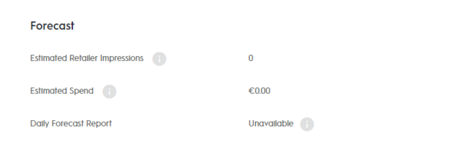 Estimated Retailer Impressions: The estimated number of retailer impressions you can gain from the estimated spend. This estimate does not take into account competitors who target the same inventory.