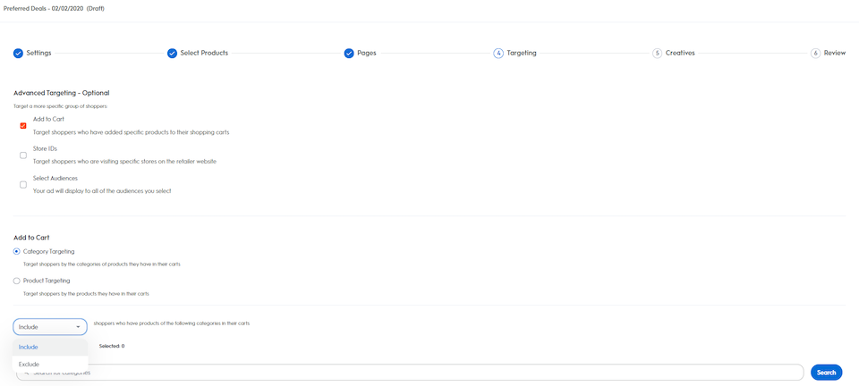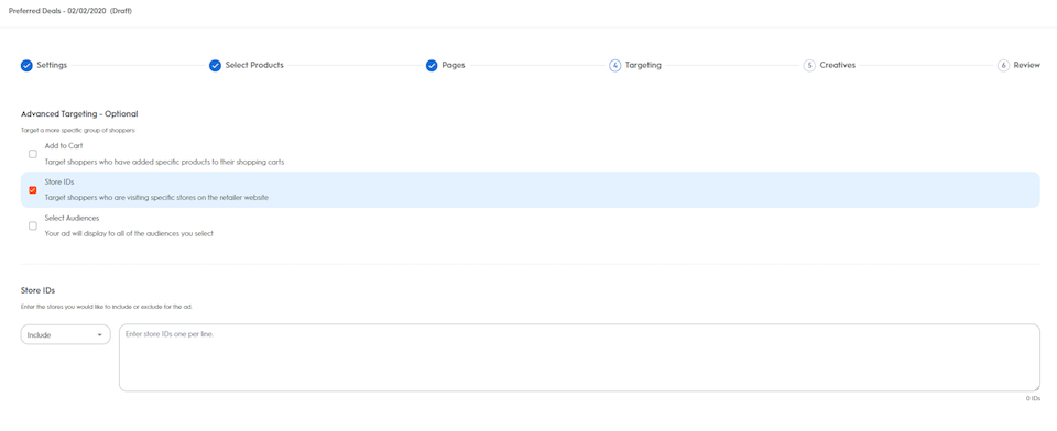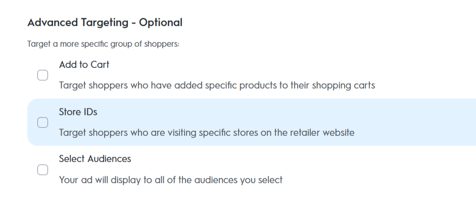 If one of the targeting options above is not listed, it means that it is not available for your selected page type and retailer combination.