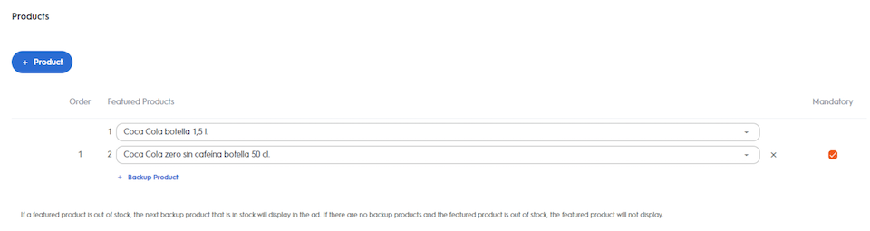 To add more products, either click +Button or click +Backup product. See the Onsite Display Line Item Creation article for more information.